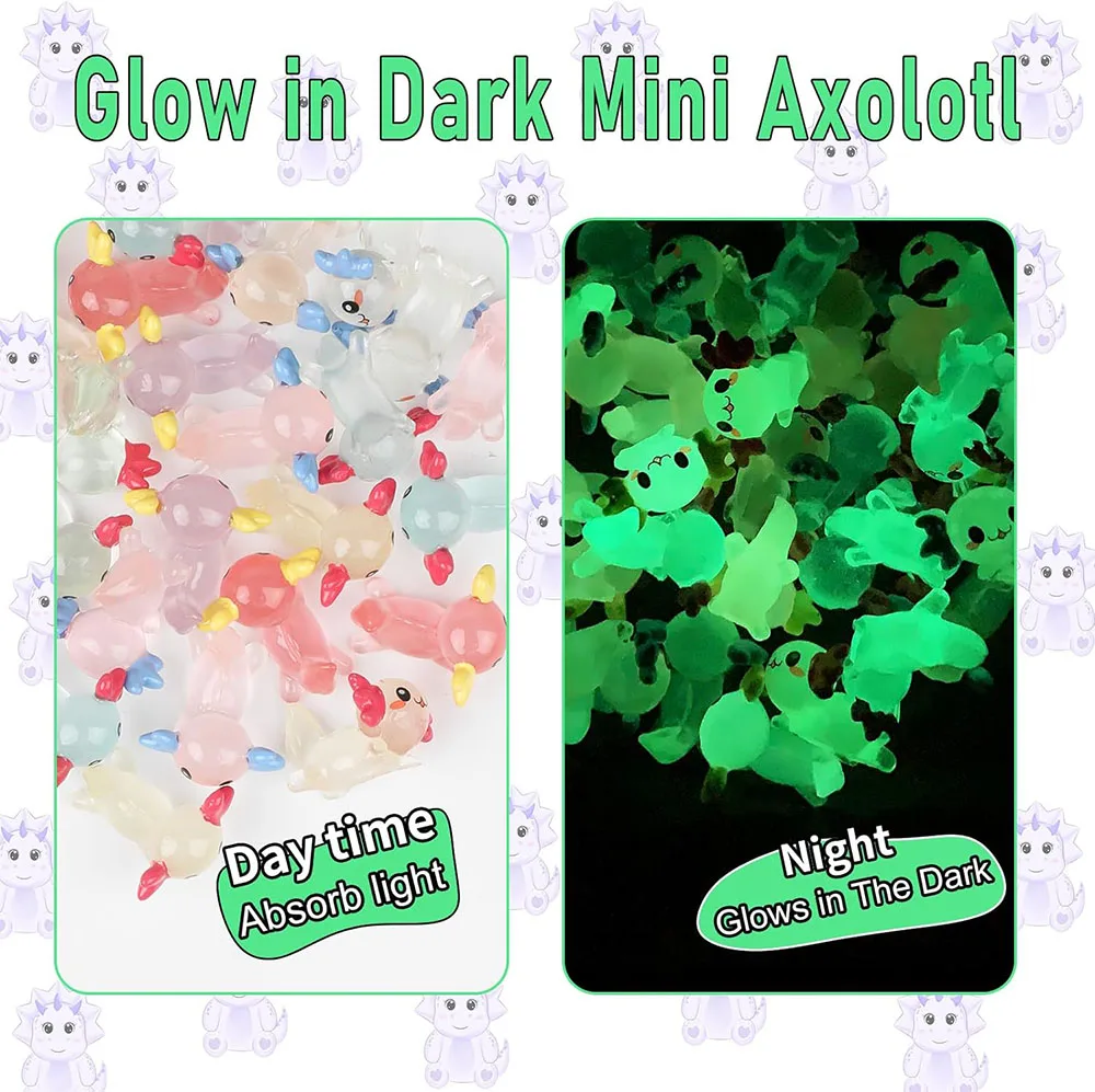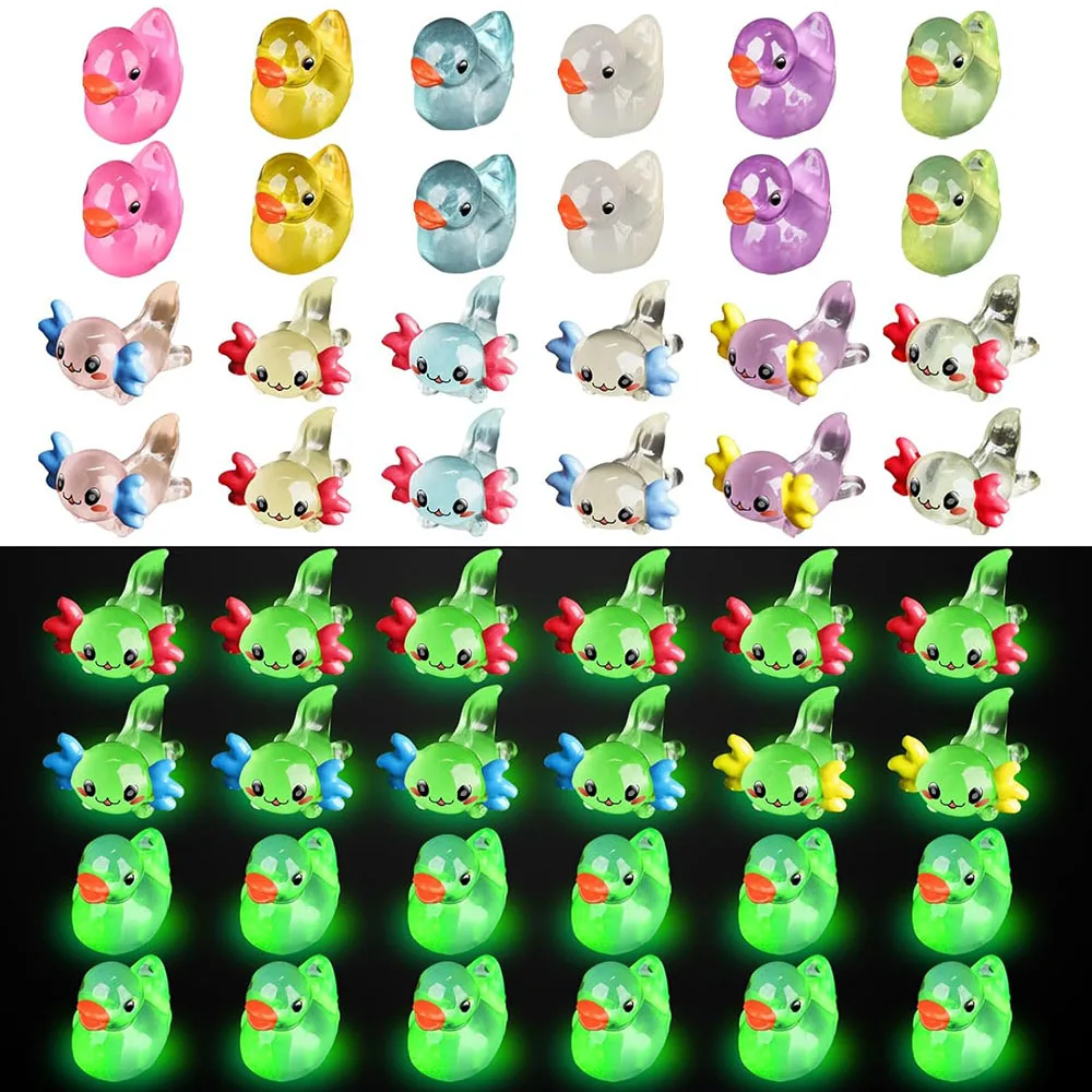 - Satisfy Your Various Needs: This package includes 12 Pcs adorable luminous resin Axolotls (6 Colors x 2) and 12 Pcs Luminous resin Ducks (6 Colors x 2). Sufficient and full of varieties that can satisfy your different needs, but please note that our products need to be placed in the sun to absorb light in order to glow in the dark.